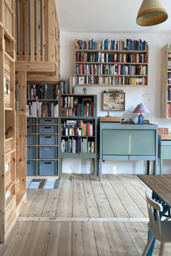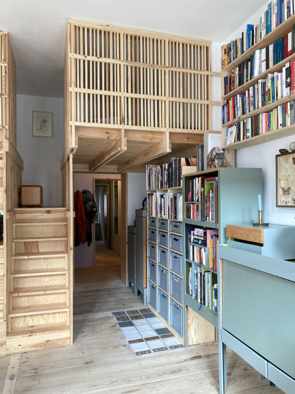 In order to make a typical Berlin apartment in an old building fit for the next 15 years of family life, it was necessary to consistently rethink the room concept. The aim was to work out all spatial qualities and potentials within the existing building. We have brought the main use to the sunny side of the street and the sleeping areas to face the cool and quiet courtyard. By consistently utilizing the room height of 3.15, we have created a three-dimensional, extremely versatile space. Within the apartment there are several "circular routes". The children's room can be divided and the bathroom has two doors. In this way, a spatial flow is created that belies the limitations of the floor space. As soon as children enter the apartment, a mostly turbulent and noisy journey of discovery through the diverse layers of the spatial structure begins.