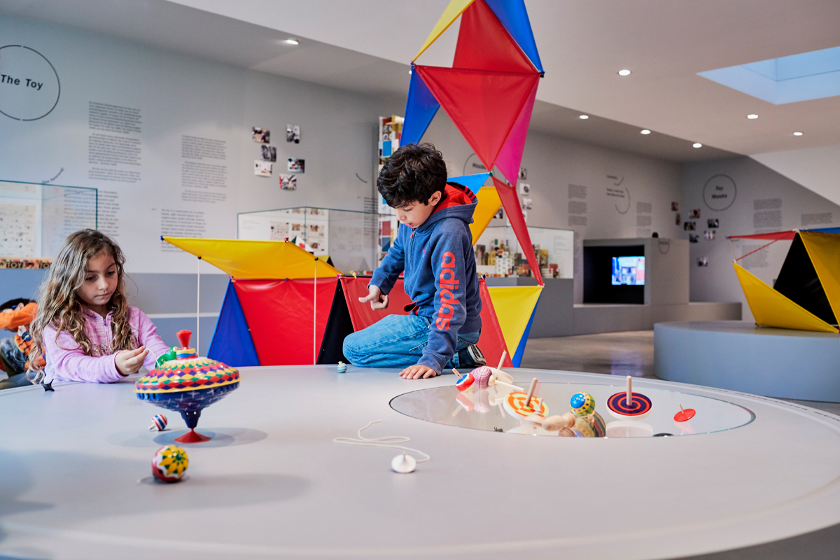 Unter den Exponaten befindet sich außerdem »The Toy«, ein Baukastensystem aus Stäben und bunten Flächen, aus dem Flugzeuge, Türme, Zelte und Verkaufsstände gebaut werden können. Die Besucher können verkleidet mit den Tiermasken der Eames’ in einer Zirkusmanege auftreten und mit dem berühmten »House of Cards« große Kartenhäuser errichten. Für die Eames‘ waren Spielzeuge Alltagsobjekte, gleichberechtigt mit Möbeln oder anderen Produkten des täglichen Gebrauchs. Ihre Spielzeuge waren daher für Kinder wie auch Erwachsene gedacht, die sich wie die Eames für die Faszination des Spielens begeistern.